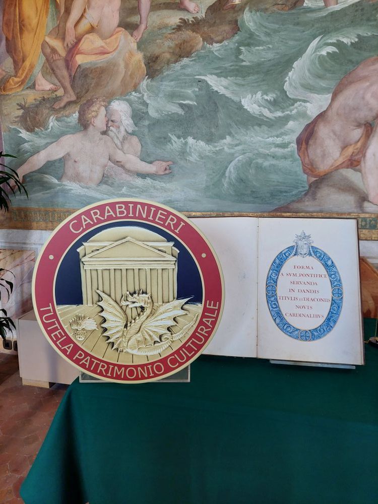 W dniu 11 listopada odbyło się uroczyste przekazania manuskryptu z udziałem wielu prominentnych osobistości i urzędników (obecny był. m.in. Mistrz Ceremonii Papieskich, abp Diego Ravelli), czemu towarzyszyły wystąpienia i przemówienia m.in. abp. Giovanniego Cesare Pagazziego, Archiwisty i Bibliotekarza Świętego Kościoła Rzymskiego, abp. Gian Franco Saby, Ordynariusza Polowego Włoch. Spotkanie odbyło się w Sali Południkowej (Salla della Meridiana) w komnatach Archiwum. Rękopis osobiście przekazał Generał Brygady Antonio Petti, Dowódca Karabinierów ds. Ochrony Dziedzictwa Kulturowego.