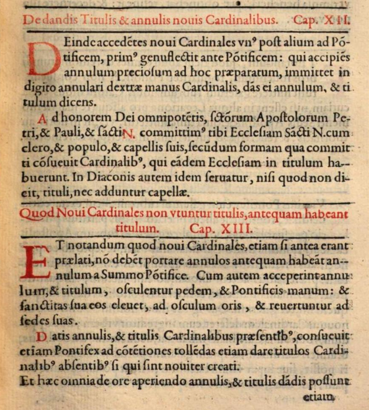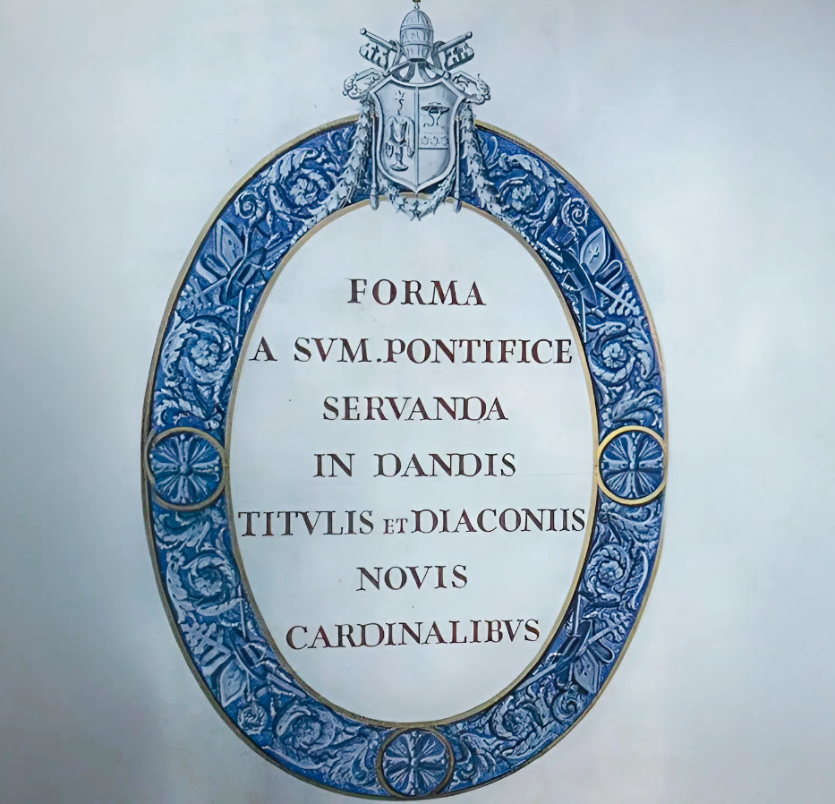 Przedmiotem całego zamieszania jest niezwykle cenny – zwłaszcza z punktu widzenia papieskich ceremonii i ich historii w XIX wieku – rękopis zatytułowany Forma a Sum.[mo] Pontifice servanda in dandis Titulis et Diaconiis novis Cardinalibus napisany w pierwszej połowie XIX wieku. Nie można stwierdzić dokładnej daty powstania, jednak biorąc pod uwagę, że na ozdobnej oprawie, z dwóch stron, znajduje się herb Papieża Grzegorza XVI, a także, że rękopis był ujęty w katalogu Archiwum Kolegium Mistrzów Ceremonii Papieskich (Archivio de’ Maestri delle Cerimonie Pontificie) z 1864 roku, z pewnością można uznać, iż był w użyciu podczas kreacji kardynalskich dokonywanych przez Bartolomeo Alberto Cappellariego. Nie wykluczone, że był używany również przez późniejszych papieży, aż do końca pierwszej połowy XX w. Jego późniejsze losy skrywają pewne zagwozdki, o których powiemy sobie niżej.