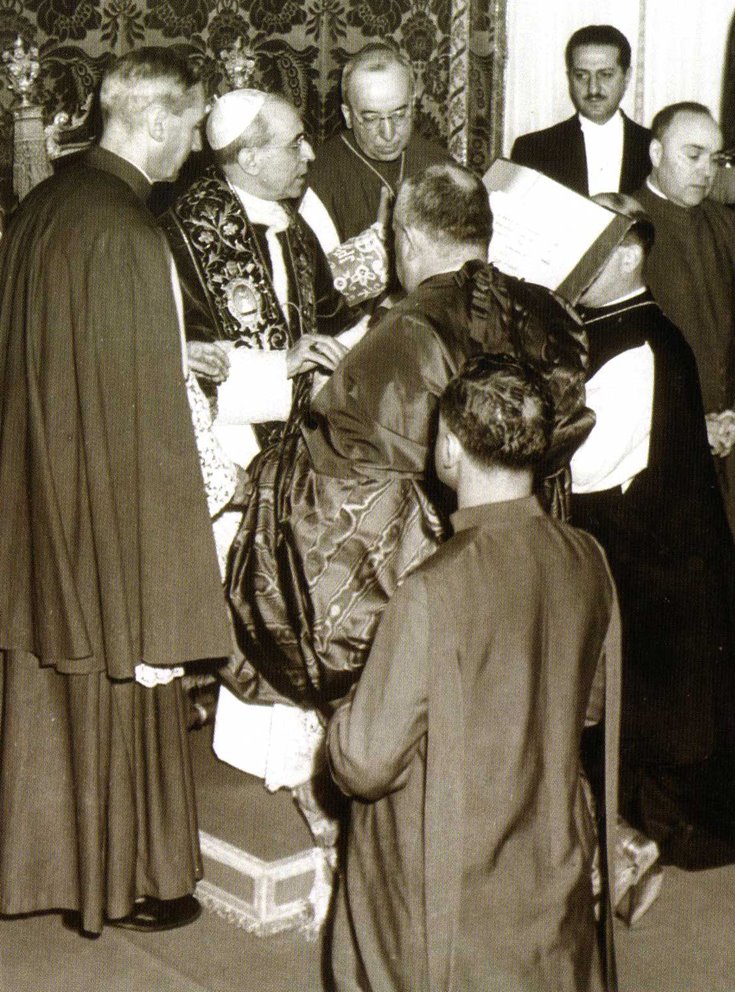 Na zdjęciu po lewej widzimy Papieża Piusa XII wręczającego pierścień kardynalski oraz dokument nadający kościół tytularny (w tym wypadku św. Augustyna: Basilica di Sant’Agostino nadawana kardynałom prezbiterom) kardynałowi Franciszkowi Quiroga y Palacios. Przed papieżem po lewej stronie klęczy zakrystian papieski, abp Petrus Canisius Jean van Lierde, ostatni w historii zakrystian papieski (Sacrista del Palazzo Apostolico). W rękach trzyma on być może właśnie odnaleziony rękopis F.71. Pewnym tropem, który będzie przemawiał za tą tezą jest fakt, iż w manuskrypcie w miejscu niektórych nazw kościołów tytularnych znajdują się podłużne i puste fragmenty papieru, co wskazuje na wielokrotnej użycie tej księgi podczas papieskich ceremonii.