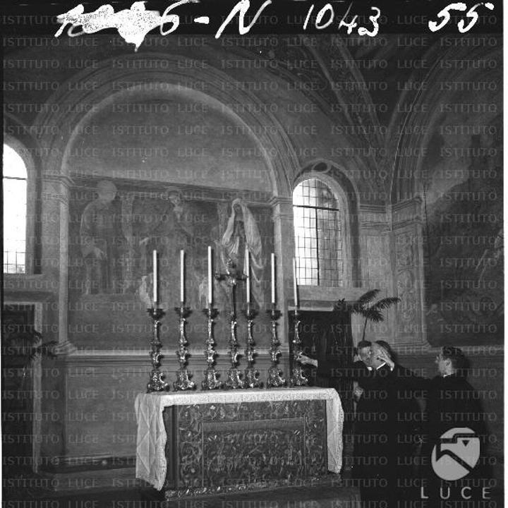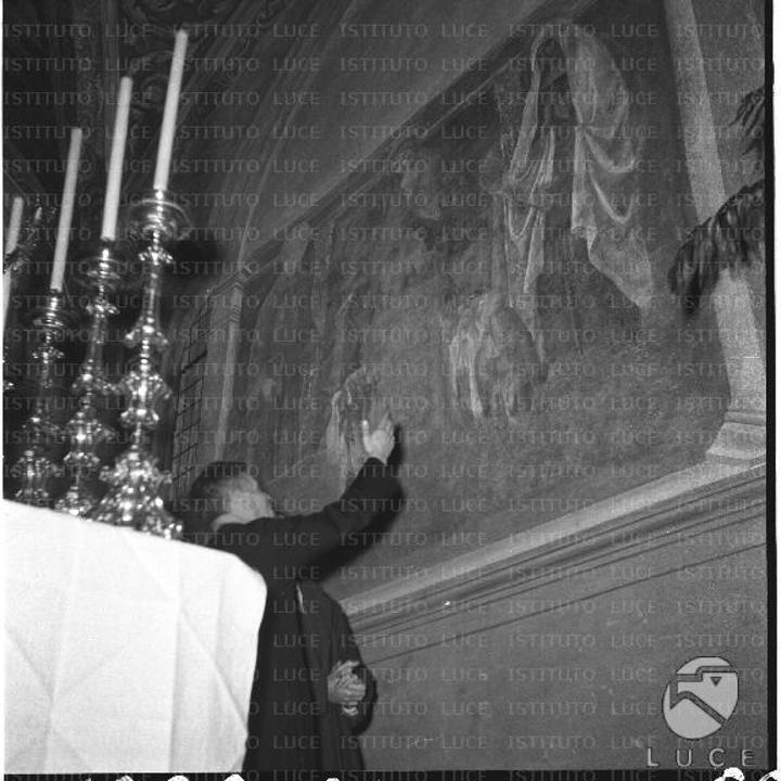 After the celebration, architect Bernardo Meli showed the Pope around the restored areas. John Paul II admired Pietro Cavallini’s opus magnum, a fresco depicting the Last Judgment, painted around 1300 (located on the right wall of the nuns’ choir). Afterwards, in the presence of Cardinal Ugo Poletti and Archbishop Vincenzo Fagiolo, then Secretary of the Congregation for Religious and Secular Institutes, the Holy Father met with the nuns. The Benedictine nuns asked John Paul II to sign a parchment commemorating his visit and to write an entry in the book of distinguished guests of the basilica and monastery. As a sign of gratitude, the sisters presented the Pope with a chalice engraved with Karol Wojtyła’s episcopal motto Totus Tuus, as well as a white chasuble. Finally, the Pope met with representatives of the state authorities, the parents of the nuns, and young people.