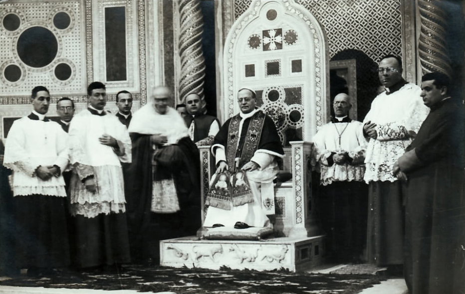 Monsignor Enrico Dante (first on the left) as papal master of ceremonies of Pius XI. Next to him is Monsignor Carlo Respighi, Dante’s mentor and friend, then Prefect of the Apostolic Ceremonies.