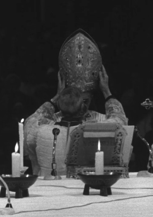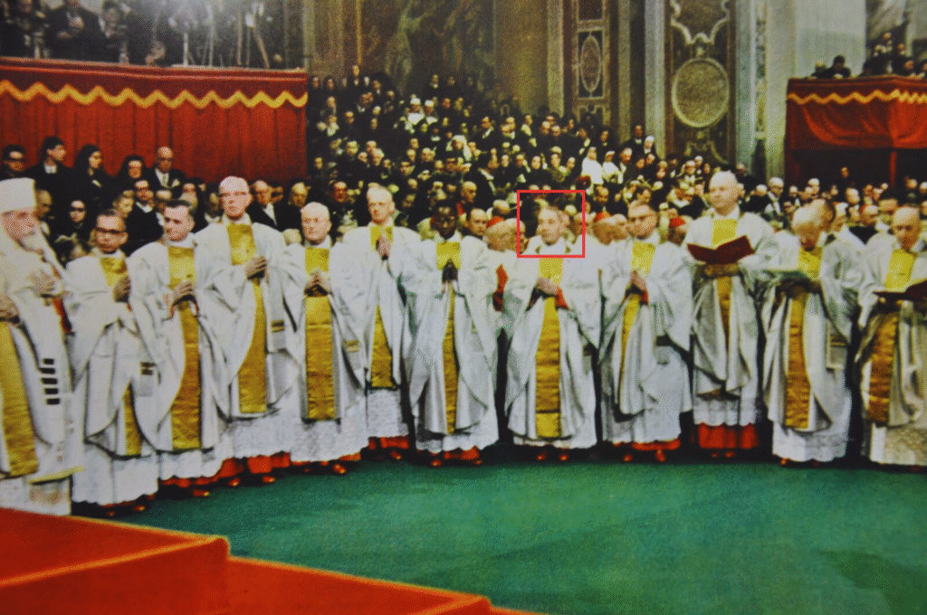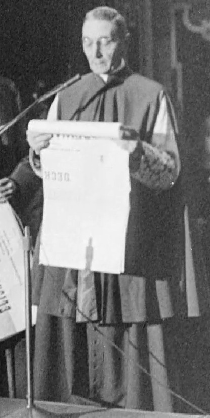 Monsignor Enrico Dante as Master of Papal Ceremonies during the solemn session of the Second Vatican Council.