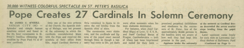 Informacja prasowa z Osservatore Romano z dnia 28 lutego 1965 roku (nr XXXII/9/1606, s. 5).
